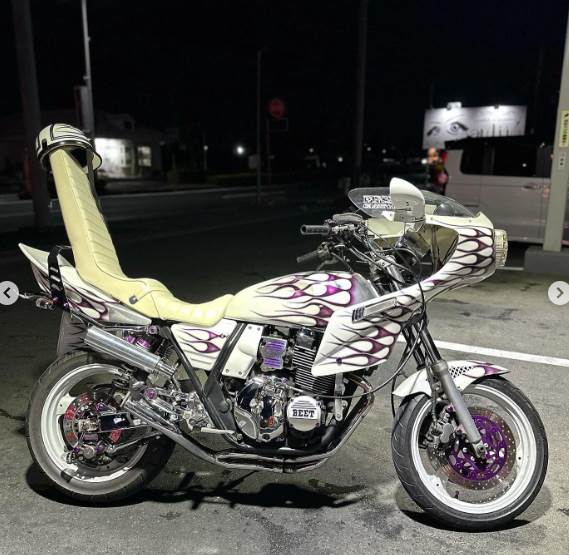 紫×白のカラーリングが強烈なインパクトを放つ一台。小型のビキニカウルと低く構えたポジションで、登場シーンからして異彩を放つ。見た目も走りも派手にキメたい派にはたまらない。