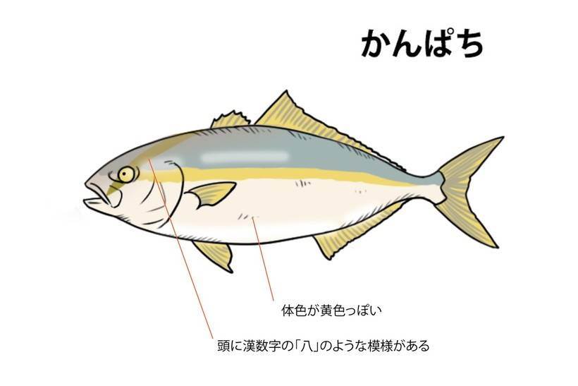 ブリ、ヒラマサ、カンパチは似ているが、それぞれ特徴があり、見分け方を知っておくと釣りに役立つ。まず、カンパチは体色が黄色みがかっており、頭に「八」の字の模様があることで簡単に見分けられる。