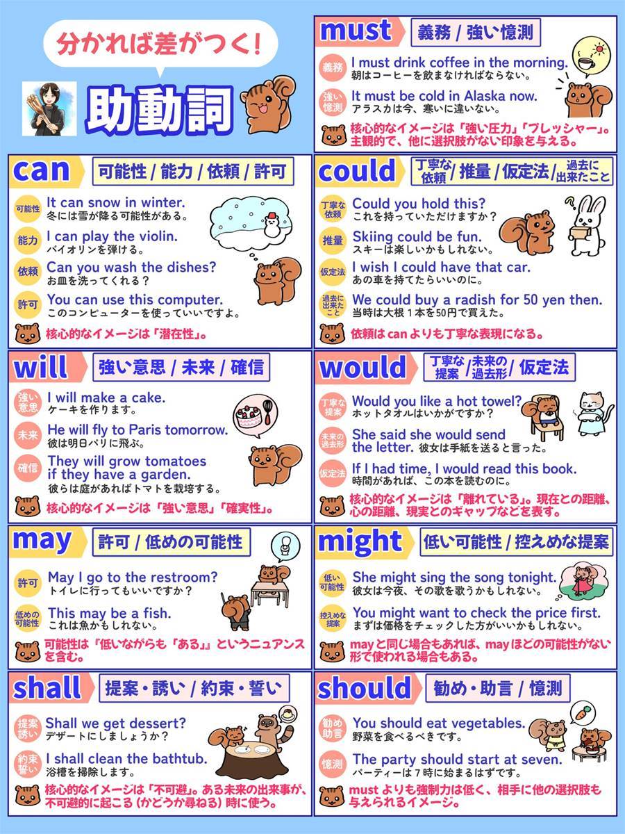 2.会話でも試験でもよく出てくる、助動詞の使い方をまとめました