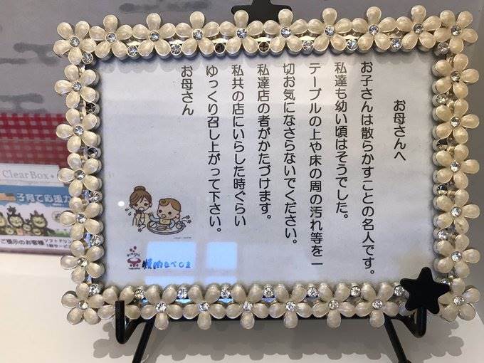 2.子供を連れていろんな国を旅行したが、子供が泣いたり騒いだりした時の周りからのプレッシャーや冷たい視線は日本がブッちぎりだったね。子供の入店断るにしてもこんな書き方するひつようない。日本ってのは子供が少なくなっているのに子供や子育てに非常に冷たい国なんよ