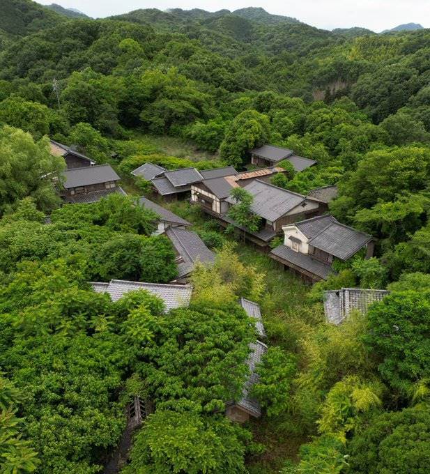 1.山中にぽつんと残された江戸時代の街並み。 街全体が廃墟になり成長した草木に埋もれ始めていた…