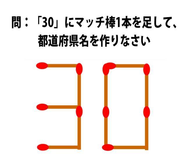 2.【頭の体操クイズ】「30」にマッチ棒1本を足して、都道府県名を作りなさい