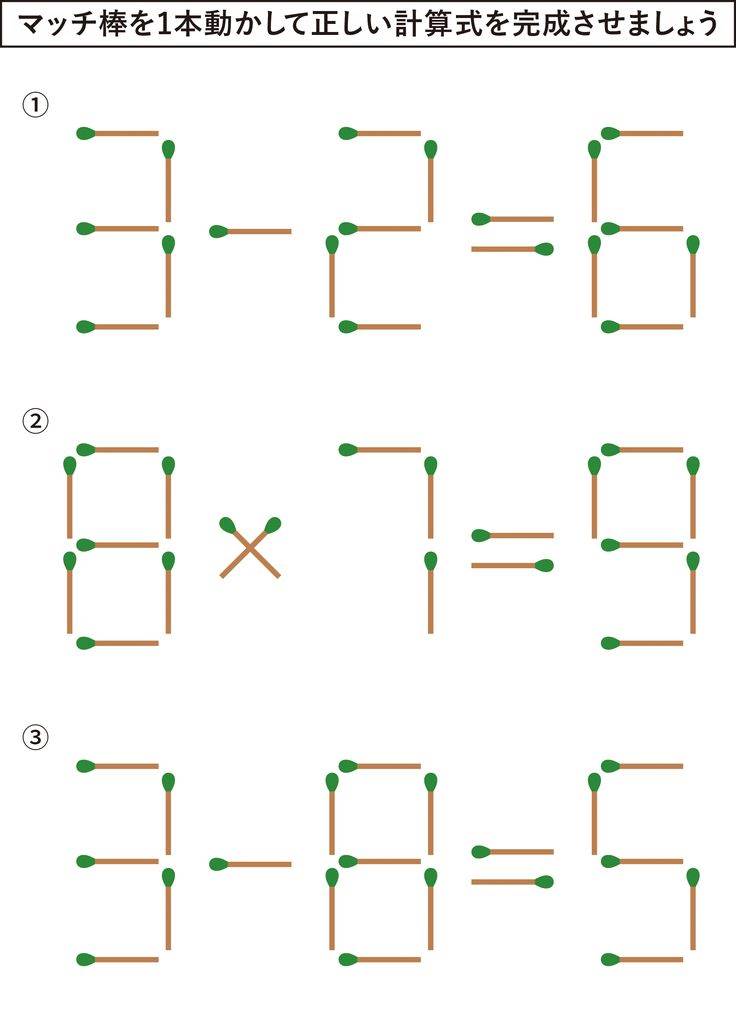 5.マッチ棒を1本だけ動かして、式を完成させよう!