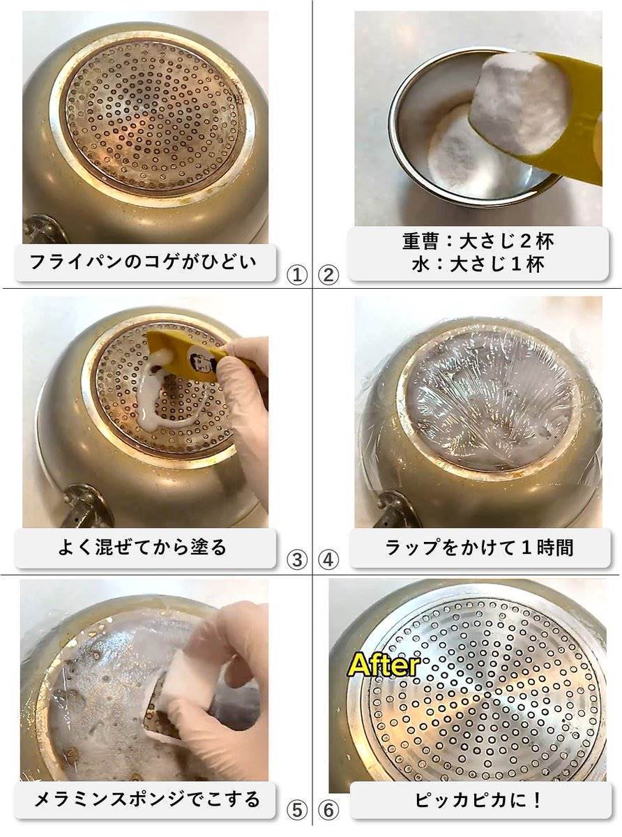 1.フライパンをひっくり返したらコゲがひどすぎて、見なかったことにした人に教えたい。重曹のチカラで新品の輝きがもどるし、気持ちも100倍あかるくなる。