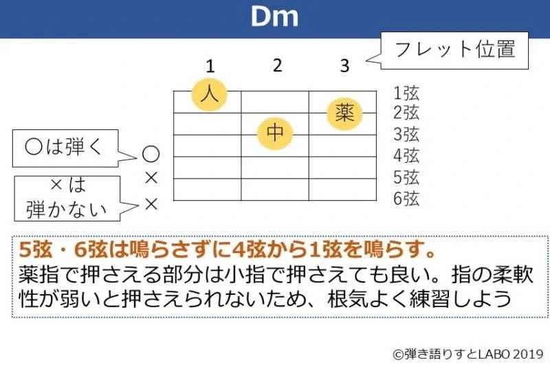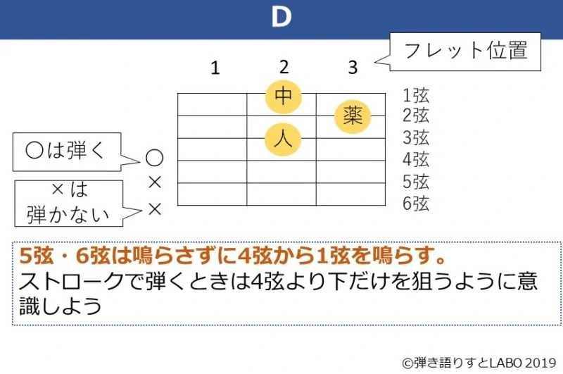 2.Dコードの特徴は5弦、6弦を鳴らさないことです。
